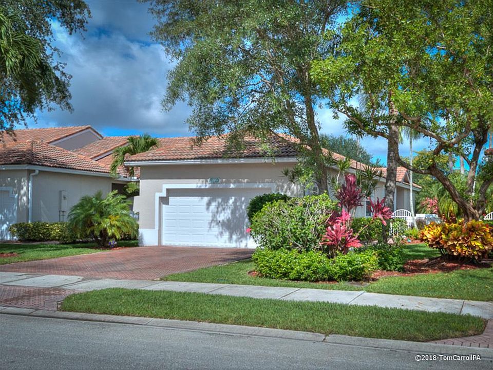 WATCH THE VIRTUAL TOUR - This truly is an amazing 3 Bedroom, 2 car garage fee simple villa. This corner location is both in demand and so rarely available. You will understand why when you see the tranquil views from your screen enclosed patio. Inside there is an open floor plan that is light and bright, featuring volume ceilings, upgraded light fixtures and ceiling fans. You have ceramic flooring throughout the main living areas, except for two bedrooms that feature wood laminate flooring (no carpet anywhere). The open kitchen offers Corian counter tops, there is a separate laundry room with a utility sink, the list goes on and on. The AC was also new in 2014. This beautiful community has all the amenities you would ever want. The HOA fee includes your lawn care, alarm monitoring, basic cable, the card gate, a security patrol, they paint your villa every 5 years, power wash your roof every 3 years. There are 2 pools, a fitness center, tennis courts, basketball courts, even a clubhouse. Do not miss out on this opportunity