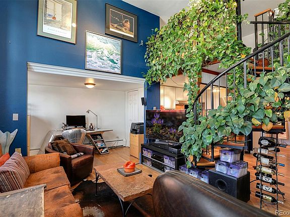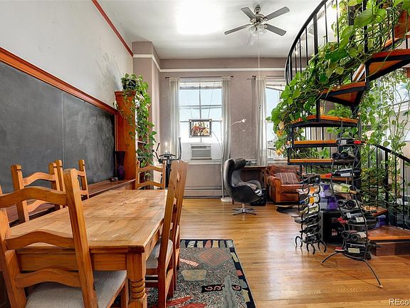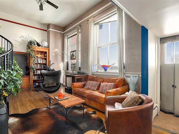 Unique loft in a converted 1904 schoolhouse in an unbeatable location! Located in half of one of the original classrooms, the space boasts abundant character including soaring ceilings, an original chalkboard, built-in cabinets and bookcases & gorgeous hardwood floors. The bright open concept living space has a den with the laundry closet off the living room and a spiral staircase encompassed by a living plant wall that leads to the lofted sleeping space. Kitchen features updated stainless steel appliances. Plentiful storage throughout including 2 walk-in closets in the loft. Take in the sunset and the mountain views while enjoying an after-work cocktail on the private west-facing balcony. Walk to all the shopping, dining, and nightlife found in LoHi as well as Jefferson Park, Sloan's Lake & Mile High Stadium. Located in a secure gated community with a reserved parking space for added convenience.
