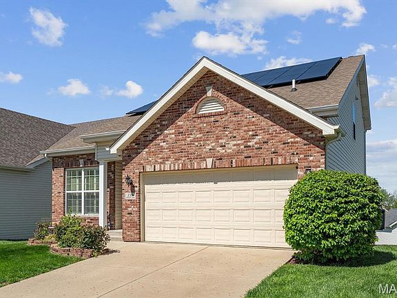 Easy, maintenance free living in Spyglass Village located within the beloved Orchards golf course community. Drawing to Mascoutah Schools and quick access to Scott AFB - this 1.5 story, home with a finished walk out basement is ready for you to call home! Step inside to find a bright, open living room with vaulted ceilings, hardwood floors, and custom wooden blinds. The main floor flows seamlessly amongst the kitchen, dining room, laundry room and primary suite. Step out onto the covered deck for a perfect space for outdoor entertaining and dining. The second floor is spacious with a loft living space, two generous sized bedrooms, and a full bath. The recently finished walk out basement offers an additional living room/rec room, bedroom with egress, a full bath, and a large storage room w/ built ins. Home includes an underground dog fence around the property and comes with large and small dog collars. Easy access to shopping, dining, highways, and more - schedule your showing today!