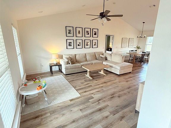 Welcome to this beautiful move-in ready, open concept, 3-bedroom, 2-bath home. The spacious living area offers vaulted ceilings, a neutral color scheme and tall windows to maximize natural light throughout the main living areas. The kitchen offers granite countertops, recessed lighting, stainless appliances, pantry, kitchen island, and soft close drawers and cabinets. The primary bedroom features recessed lighting. The primary bath offers his and her walk-in closets, dual sinks, and a walk-in shower. There is a large covered back porch overlooking the beautiful oversized 1.5 acre lot. The lot features a large workshop with two entry doors as well as two large roll-up, garage doors. Inside is a loft for storage, excellent overhead lighting, and water connections. The workshop has two lean-to’s as well. This home has an alarm system, gutters and attractive storm shutters on all exterior windows. The yard is fully fenced. This is a must-see home!