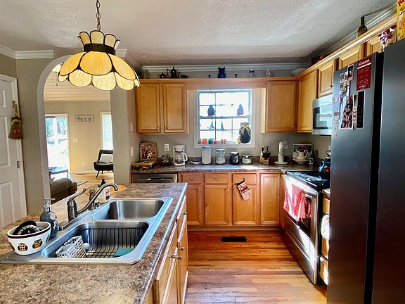 You'll be greeted with gorgeous vaulted wood ceilings and a cozy stone fireplace as soon as you enter the living area of this beautiful home. So many updates: New paint throughout, new fixtures, new stainless steel appliances and the roof was replaced in 2020. Don't miss the great storage in the stand up crawl space! Sellers noted that they have had the home annexed into the Hartselle City Hartselle City School system.