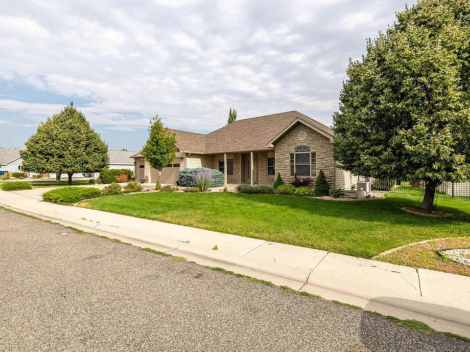 Nestled in a well-established neighborhood, this beautifully built home offers the perfect blend of convenience and tranquility. Located adjacent to Meadowbrook Park, you’ll enjoy the serenity of nature while being just moments away from shopping and downtown Cody. This sprawling ranch-style residence boasts 5 spacious bedrooms, including a master suite and many in-home office options. The living room, dining room, and kitchen feature vaulted ceilings, creating an open and airy atmosphere. The kitchen has granite countertops and ample cabinet space. Sliding doors lead to a covered patio, perfect for entertaining guests or enjoying a quiet moment with a book. On the first floor, you’ll find a convenient laundry room and an oversized 3-car garage, offering plenty of space for your vehicles and storage needs. The finished basement is a retreat of its own, complete with a family room, a library or media room, two additional bedrooms, and a 3/4 bath, providing a private haven for guests. The beautifully landscaped yard offers a picturesque setting, inviting you to relax and unwind. Whether you’re hosting a summer barbecue or simply enjoying the peaceful surroundings, this outdoor space is sure to impress. This exquisite home is waiting for your personal touches to make it uniquely yours. Welcome to your new home.
