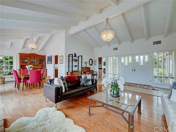 Live where country meets city in the equestrian area of Newport Beach. A delightful single level ranch style home with 4 bedrooms and 3 baths (one with bathtub and 2 with showers) Newly remodeled bath with gorgeous white marble. Open floor plan home with lots of light. The home welcomes you with the warmth of hardwood floors in the formal living room, high vaulted beam ceilings, and inviting fireplaces. French doors and windows charm the home throughout. Custom kitchen with granite, 5 burner cooktop, breakfast bar and more. Kitchen opens up into a cozy family room complete with custom built ins, media for entertainment and a second fireplace. A formal dining room with French style glass slider opens into a warm and welcoming backyard. Master bedroom has mirrored wardrobes and master bath with a step in shower that looks onto a private Zen garden. Just steps away from the beautiful Back Bay with hiking, biking and horse trails or a luscious park with a sport court and tot lot. What a great opportunity to live in an estate neighborhood with horse paths right in the heart of Newport Beach.