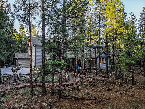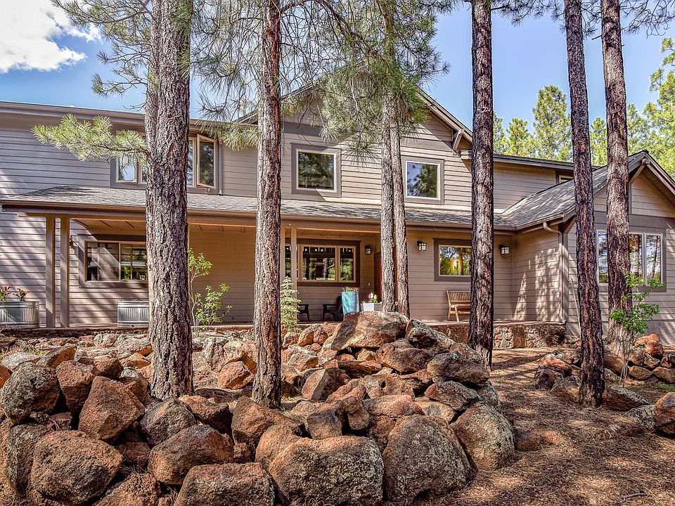 Voted BEST home on the Flagstaff Luxury Tour! With comments ''I want to live here'' ''so clean'', ''The View & Privacy'', ''This is perfect''. The custom home is set among the trees and rocks lending to privacy and space on .9 acres with views. Inside the living space is light and open with custom woodwork details. There is a master suite on the main floor, with an oversize master bedroom with private deck and views, 2 large bedrooms and loft to divide the upstairs. The views out back are undeniable with open patio, covered porch, space and privacy. Out front is a quiet and private setting, a large porch with southern exposure to the sun and ample parking leading to a 3 car garage. The home is heated with radiant floor heat adding to the overall comfort. View attached list of all the upgr