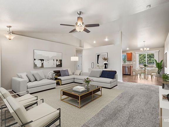 Beautiful, move-in ready, single-level home in the heart of Meridian with no HOA! New A/C & New Water Heater in 2022 and a New Roof in 2016. This 4 bedroom 2 bath home has a convenient split floor plan and a large great room with vaulted ceilings. The kitchen features an open layout with all stainless-steel appliances with a newer refrigerator. The large primary suite offers a walk-in closet, granite counters, dual sink vanity, and a walk-in shower. Large backyard with a new patio cover, and no rear neighbors (Blue Ribbon winning Chief Joseph Elementary School playground directly behind). Updated bathrooms with newer showers, bathtub, and toilets. Updated carpet, vinyl flooring, rain gutters with leaf guards, and LED light fixtures throughout. This home is fresh and super clean! Close to shopping, restaurants, Kleiner Park, and The Village. Buyer and buyer's agent to verify all.