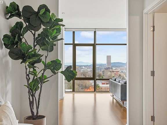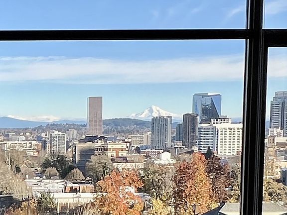 Open Saturday 1/6, 12-3. Northeast corner condo in the Westerly with walls of windows framing impressive city and mountain views. You will feel at home the moment you walk into the formal entry with gallery wall space, coat closet, powder room, and a preview of the spectacular city view as you head into the living room! The open and inviting floor plan is a perfect place to watch the world go by and enjoy fantastic bird watching (Hawks frequent the airspace), changing colors of the trees with every season, and Fremont Bridge. Other features include a gourmet kitchen with stainless appliances, granite countertop, gas cooktop, built-in microwave, refrigerator, dishwasher & granite island with space for seating, balcony with a gas hook-up for grilling, primary suite with large walk-in closet, laundry room, separate tub and shower, double vanity, heated bathroom floor, and private guest suite. Move-in ready with fresh paint and new wool carpet in both bedrooms. Two deeded parking spaces, one conveniently located near the elevator with EV charging outlet installed. Neighborhood amenities include coffee shops, Zupan's Market, restaurants, boutiques, and trails to Washington Park just across the street.