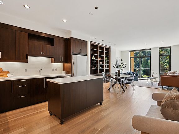This inviting condo features a south-facing wall of windows that beautifully frame views of the neighborhood, twinkling night lights, and the lush expanse of Washington Park. Step outside to a spacious, covered balcony—complete with an electric outlet and gas hook-up—ideal for morning coffee or al fresco dining.Inside, modern upgrades enhance both style and function, including a custom kitchen island with storage, new kitchen countertops, a sleek walk-in shower, and a new washer and dryer. Thoughtful built-in features in the living room and an office at the entry provide additional storage and flexible space. Don't miss the beautiful, gated courtyard, accessible on the 3rd floor. A large deeded storage unit and parking space are also included. Located in The Westerly, a luxury building offering daily concierge service, this home is just one block from the vibrant shops and restaurants of NW 23rd Avenue. You'll also enjoy close proximity to Zupan’s Market, Good Samaritan Hospital, and the natural beauty of Washington Park—home to the renowned International Rose Test Garden, the Portland Japanese Garden, and miles of scenic trails.