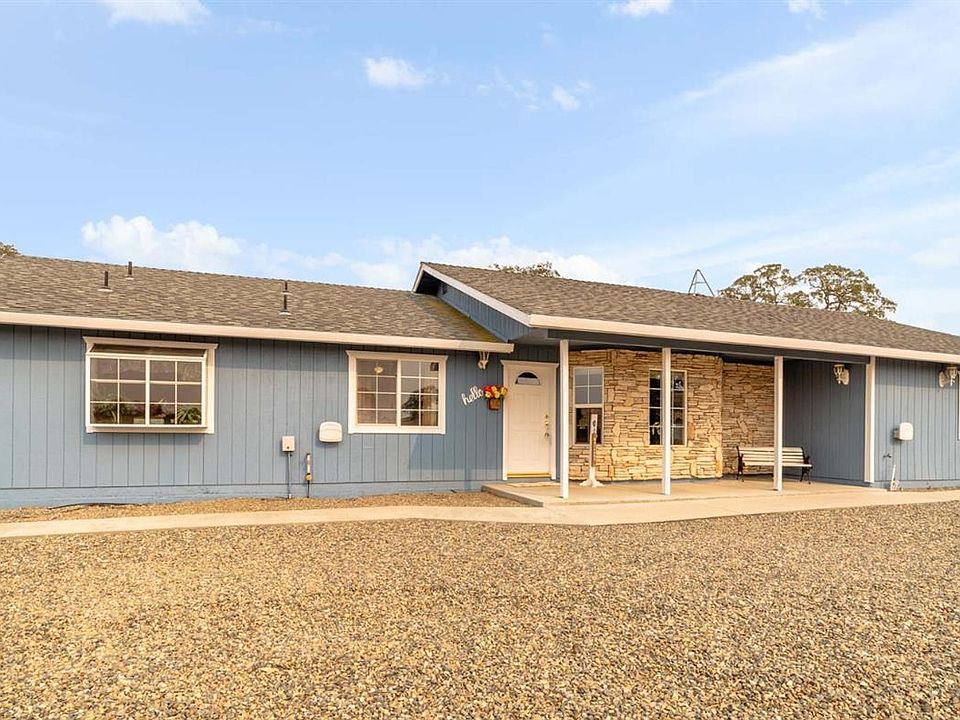 2.2 Acre Ranchette with comfortable 1603 Sq Ft, single story ranch style home. 3 Bedrooms, 2 baths with an open Great Room concept that provides lots of light. Open kitchen with lots of counter space and cabinets as well as a garden window. Large covered patio that extends your living area, great for entertaining on balmy summer evenings. Master bedroom has large walk-in closet and the bath is light and open with double sinks, soaking tub and separate shower. Oversized 2 car, finished garage with large laundry area. New exterior paint! Located between Lakes Don Pedro and McClure in the heart of the Mother Lode. Within minutes of Historic Gold mining towns and the High Sierras with Yosemite National Park.