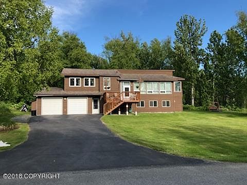 Motivated Seller! What an opportunity on this lovely, bright, well maintained home. Open kitchen with a dining area, breakfast nook and a lower level living room all with mountain views and style not anywhere else. Great sized bedrooms including a master suite with a beautiful attached bathroom. Lower level is a fantastic family room with a 1/2 bath. Big back deck, 2 storage sheds, hot tub and fire pit for summer enjoyment and almost a full acre of land. Convenient location is 5 minutes from local stores, 45 minutes from Anchorage, 2 miles from hospital! Appliances, Water Heater and furnace are less than 5 years old! Come take a look!!!