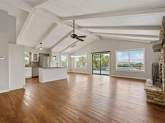 Hill country living on 3.6 acres with canyon views in Canyon Lake! 3/2 with 1384 sqft. Kitchen open to family room, fireplace, AC and ducts replaced in 2018, septic system to main house replaced in 2018, water heater replaced in 2023, ceramic coating added to metal roof and garage in 2023 to increase R-value, large detached garage can be used for boat/RV storage or workshop, RV hook up, large back deck with miles of views! Guest house on the property is currently occupied. Minutes from the lake just 1.5 miles from boat ramp 1! Pets negotiable. A true must see!