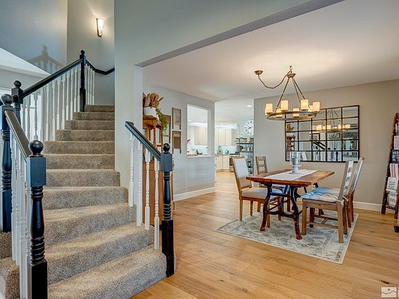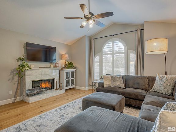 This recently updated home has beautiful views of the mountains, providing the perfect backdrop for your next adventure. With direct access to nearby trail systems, you can easily explore the natural beauty of the area, whether you're hiking, mountain biking, or just taking a walk. There is plenty of room for entertaining with a formal dining room, large kitchen with island, separate family and living room, each with their own fireplace., Updated in 2018 with shaker style cabinets, granite counters, newer appliances, and beautiful engineered hardwood flooring. The primary suite is on the main level with a walk-in closet and large bathroom. The guest rooms are upstairs.