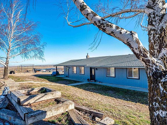 Spacious 3,456 sq ft single-level 5 bed, 3 bath home on 1 acre, with adjoining parcel of 4.6 acres. Privately nestled high in the foothills surrounded by abundant agricultural land & farms. Two separate living areas. Huge kitchen with two ovens, large island & ample storage. Oversized master bedroom w/ huge walk-in closet. Unobstructed views of the valley & Owyhees makes for the most inspiring sunrises, sunsets and epic storm watching! An outdoor enthusiasts' dream w/ northern property line bordering BLM land, providing unlimited access to the trails of Kuna Butte, perfect for horseback riding and off-road vehicle exploring. The possibilities are endless w/ a 30x50 barn with electricity & loft, 60x90 corral, fenced pastures, multiple shelters, pig pen, chicken coop, large garden area and underground cold-storage room. Additional features include W/D, fridge, solar panels, two HVAC units, wood pellet stove, outdoor playground with picnic area and firepit, mature trees & landscaping w/ full-auto sprinklers.