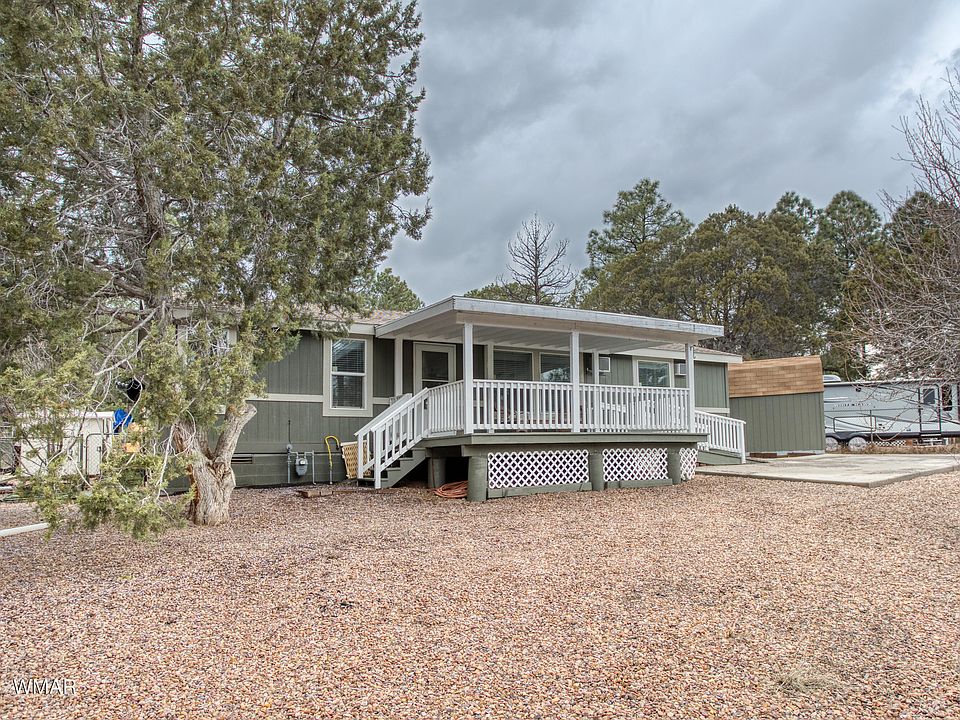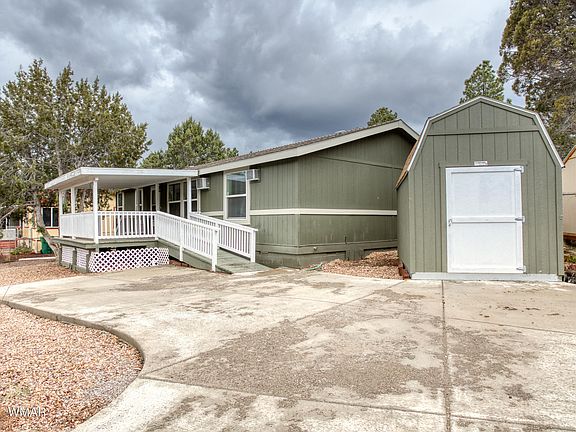 Presenting a captivating new listing in Show Low! This 2017 modular home is the perfect mix of comfort and style. Offering ample space for a single family or those seeking a second home in this picturesque area. The residence features a spacious kitchen, perfect for family gatherings. With its thoughtful design and considerate amenities, including the guest suite's deluxe walk-in tub for enhanced accessibility and convenience. This property is an ideal haven for those seeking a comfortable and welcoming home in the heart of Show Low. Don't miss the opportunity to make this stunning modular home yours! Shed on property will convey.