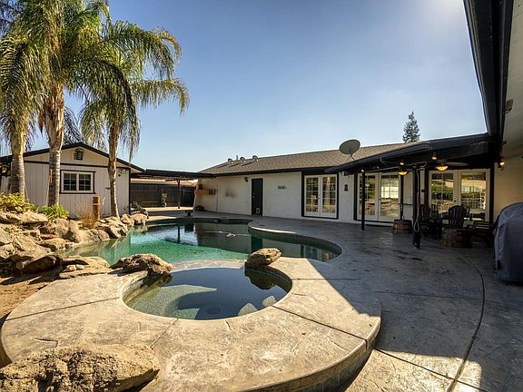 Beautiful Kingsburg 3/2 home on a large corner lot. Quiet, quaint neighborhood, close to schools and shopping. Flooring and paint recently redone and updated. Fixtures as well. The living room is large and spacious and accentuated by vaulted ceilings and open to great room/kitchen. Formal dining/family room and HUGE laundry room. Large Master Bedroom with walk-in closet. For your enjoyment a large covered patio, in ground pool and spa. 2 car attached garage, 1 car detached garage/shop. RV Parking and carport. Formal living/dining. French doors out the backyard.