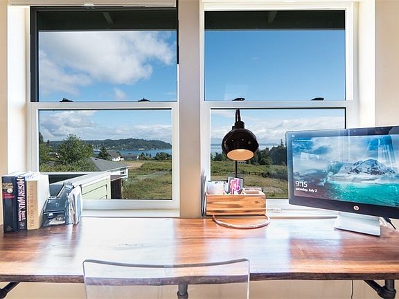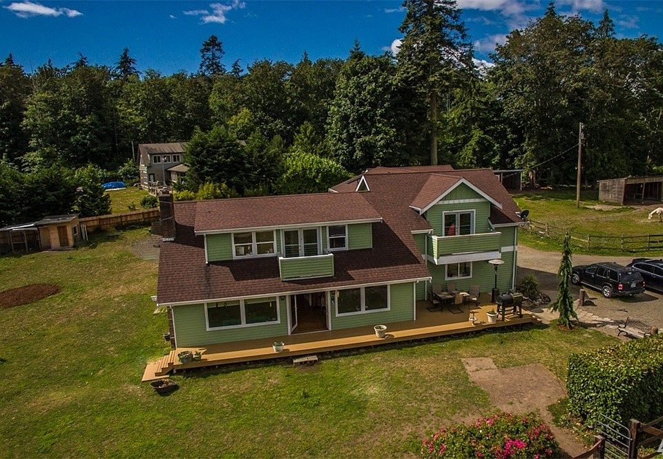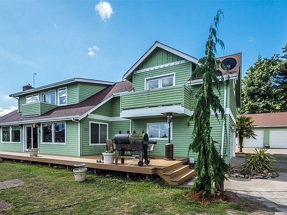 Panoramic vws of Shipping Lanes & Mt. Baker from this 2-story home on 1.32 acs. Kitchen has almost new appliances,vw,Bamboo flrs & door to vw deck. 2-bdrms on main flr have patio doors out to lrg new deck. Upstairs-mstr bdrm w/French doors to vw deck,gas F/P,built-in safe & huge walk-in closet w/extra washer & dryer. Mstr bath has glass block shower,radiant heated flrs & skylights. 3-car attached garage & 3-car detached shop. Land is fenced for horses w/horse barn,horse paddock & chicken coup.