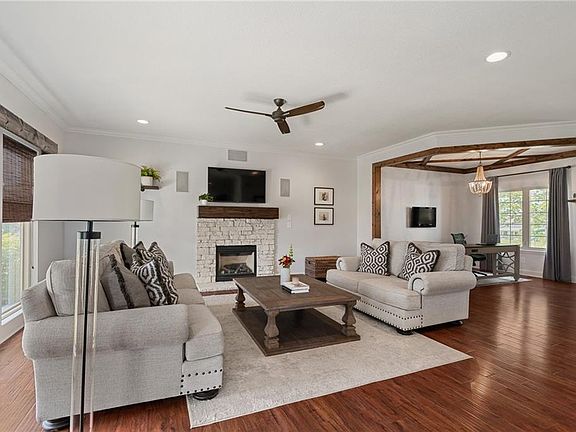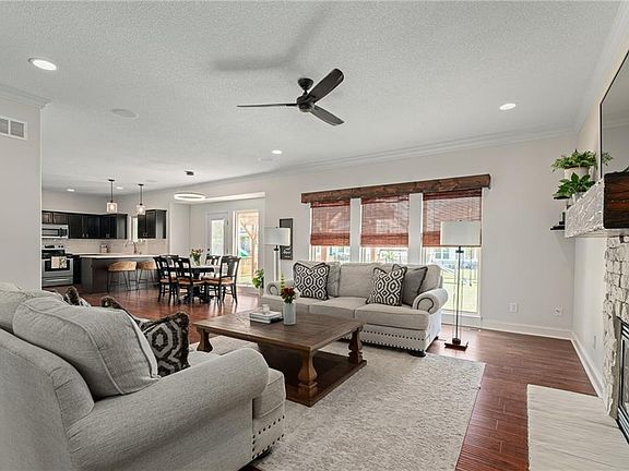 The exterior impresses with meticulous upkeep, showcasing professional landscaping and value-added features like a firepit patio with a pergola for shaded relaxation. Located near K-7, and nestled in the highly sought-after West Lenexa neighborhood, The Reserve you'll LOVE everything about the location. The Reserve offers easy access to the surrounding area and a host of neighborhood amenities such as a neighborhood pool, clubhouse, basketball & tennis courts, a playground and so much more offering endless entertainment and family fun. Book your showing today and DO NOT miss your chance to experience a life of comfort and convenience in this spectacular home!