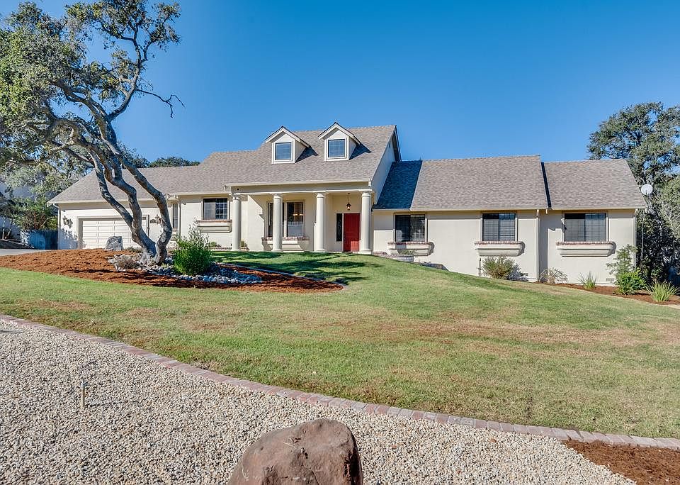 Located in the highly sought after Pine Canyon community is a gorgeous 4 bedroom 2 bath updated home on over 1 acre w/a beautiful old Oak tree grove. The home has fresh paint in & out, new roof, carpet & refinished wood floors. The kitchen is a chefs delight w/ cherry cabinets, granite counters, SS appliances, a walk-in pantry & an island which opens both into the dining room & the vaulted ceiling living room & is a perfect place to gather & socialize. Living room boasts gorgeous views of the secluded wind-protected back yard & the Oak grove thru the French doors which allow for easy access to the patio for entertaining. Adjacent to the entry there is a family room. The bedroom wing includes 3 guest rooms & the master, which is spectacular with a massive walk-in closet, dual sinks, a jetted bathtub w/ garden views, & Â large shower. Other features include an oversized garage, a sweeping driveway, & a serene outdoor patio area to enjoy the outdoors feel, space, sunshine & singing birds.