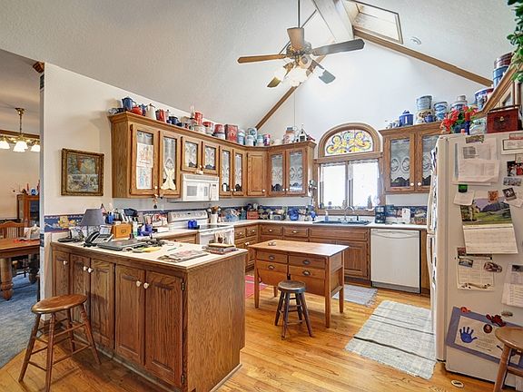 12 acres M/L, at East edge of Harrisonville. Beautiful custom built Victorian Style Ranch home. Many custom features ie., stained glass windows, Crown Molding, Hardwood floors, Custom milled woodwork. Antique mantle & antique doors. Custom built interior doors, Large walk-in Pantry, Large walk-in closets. Upstairs bedroom/ den includes 1/2 Bath. Vaulted ceilings, skylights, Large sunroom with brick floor, central vac. Covered Deck and over 60' x7' covered porches.