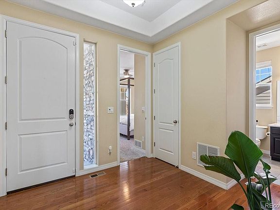 Welcome to this exquisite Ranch-style home in the highly coveted Inspiration community. Boasting 5 bedrooms and 3.5 bathrooms, including a luxurious master suite on the main floor, this home is sure to impress. The 5 piece en suite is adorned in elegance, featuring a lavish 5 piece bath with double sinks, a walk-in closet, and a soaking tub.As you step inside, you will be dazzled by the grandeur of the home's almost 4,000 square feet of the open living space flows naturally from the kitchen to the dining room to the family room, highlighting its spaciousness and connectivity.. The gourmet kitchen is equipped with top-of-the-line stainless steel GE appliances, quartz countertops, and a breakfast bar that seats up to six. The expansive ceilings and abundance of natural light create a warm and inviting atmosphere.The newly finished basement features 2 bedrooms, 1 non-conforming, a full bath, and a gym/possible theater, perfect for entertaining guests and family, as well as utility room and ample storage. The 3 car garage and mudroom provide ample storage space for your every need, while the smart thermostat, Solar Panels, ring doorbell and Vivint security system offer the utmost in modern convenience and security.Outside, the entertainment continues with a covered patio which precedes the meticulously maintained yard assisted by a sprinkler system, providing a serene oasis for relaxation and enjoyment. Situated in close proximity to trails and pool, and other amenities, this magnificent home boasts stunning views of majestic mountains, making it a truly pristine place to enjoy the Colorado lifestyle. This home is a true gem, and an opportunity not to be missed. Schedule a showing today and experience the epitome of luxury living.