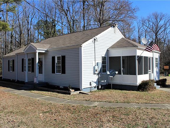 Absolutely charming rancher on an acre of land in Dinwiddie! This lovely home offers living room, eat-in updated kitchen with plenty of cabinet space, master bedroom with master bath and walk-in closet, 2 additional bedrooms with double closet and built-in shelves, and another full bath. The property has central electric heat and air, a pull-down attic, updated vinyl windows, updated roof, screen side porch, rear deck overlooking the open spacious rear yard, detached storage shed with electricity, and carport. This home is in a USDA eligible area, rural and peaceful but still close enough to interstates, schools and Fort Lee to be convenient. This one will not last long, check it out!