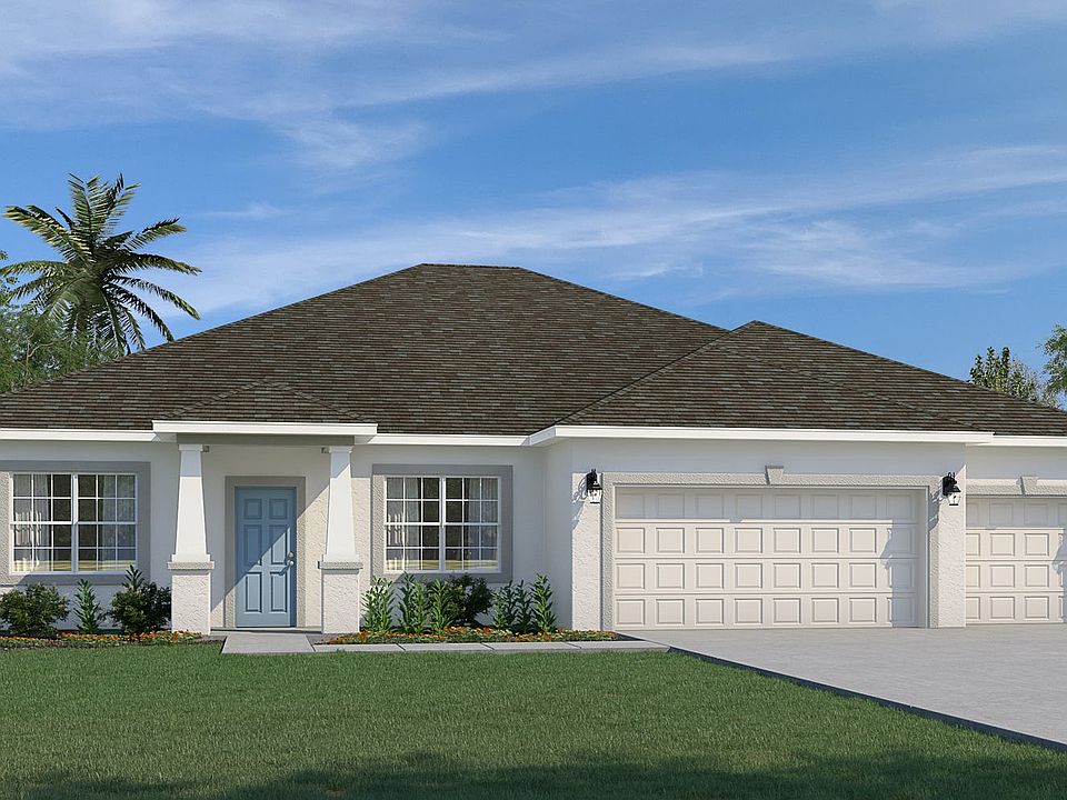 With three bedrooms, three bathrooms, and a three car garage, this layout is one of Holiday Builders' more spacious plans. This home contains several high demand features such as beautiful elevation choices, massive covered lanai, Jack and Jill secondary bathroom, breakfast nook, and large kitchen island overlooking the great room. There are also great optional structural features including coffer ceilings, a gourmet kitchen, formal living room, fourth bedroom, or a den/office. The sizeable owner's suite has a private bathroom with his and hers closets, large tiled shower, optional vanity or his and hers sinks and water closet for added privacy. With plenty of colors to choose from for your cabinets, countertops, and flooring, you can easily make it your own. Welcome home!