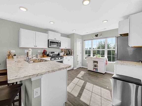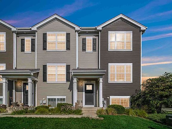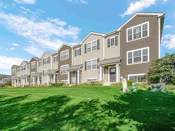 END UNIT in Cambridge Lakes with the desirable LINCOLN design! Open concept home with 3 levels of living - 3 bedrooms, 2.5 baths, 2 car garage. You'll find tons of closet space throughout on each level. Walk in from the garage and you'll find the flex room off to the left that can easily be made into an office, play area or a 2nd family room. Next level up you'll find the spacious eat-in kitchen with automatic custom blinds. Kitchen features stainless steel appliances, breakfast bar island, and pantry with plenty of storage. The dining room is big enough to host your next dinner party. Enjoy a relaxing evening on the balcony right off the living room. Upper level has the convenient laundry. Master bedroom has a large walk-in closet plus a private bath which includes a double bowl vanity and walk-in shower. Cambridge Lakes offers a great location close to 90 and shopping. Enjoy the clubhouse with a pool, party room, fitness center, indoor gym, and aerobics studio! 12 lakes, 12 parks, walking trails, and more! Excellent school district (Hampshire school district #300)! Investor friendly! Agent owned