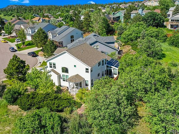 Nestled in the heart of Castle Rock. This amazing home is located on a private, quiet cul-de-sac that backs up to 19 acres of open space and hiking trails in the desirable Woodlands neighborhood. Follow the trails just steps away from your own backyard to visit the recreation center or play at the The Woodlands Bowl. Amazing mountain views and rock formations are all around. When you enter this home you are greeted with soaring ceilings, beautiful wood floors and a grand spiral staircase. This updated 2-story home has 4 bed rooms, 3 bath rooms and 2 car garage. Master bedroom is located upstairs with attached mater bath, walk in closet and amazing views. 3 bedrooms and a full bath are located upstairs as well. Main floor study with fireplace and french doors, living room and formal dining room with walk-out to the deck, spacious updated kitchen w/large island. Family room w/ fireplace & built-ins, laundry, 1/2 bath and an amazing sunroom with french doors with access to the deck. Enjoy the back deck with the sounds of the water feature, trees, wild life and take in the views of beautiful Colorado! Downstairs is the a media room where the entertainment center, TV, speakers and console stay! Newer Air Conditioning, furnance, roof and driveway. Stain glass over fireplace and in sunroom, Whole House Fan, window treatments throughout, security system, shelves, freezer in garage, refrigerator and safe in basement. Paradise with proximity to everything we love about Colorado. Just a few minutes to downtown Castle Rock, shopping and restaurants. Easy access to Colorado Springs and Denver. Home is ready for a quick closing and move in!