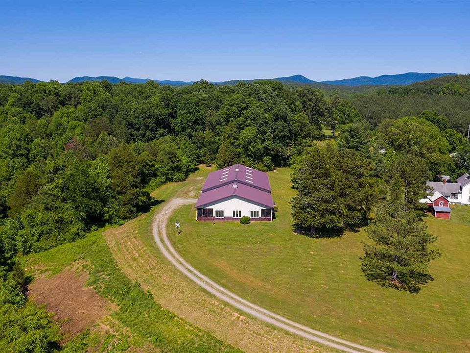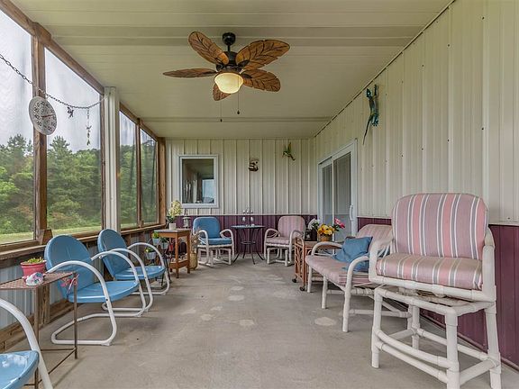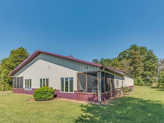 Fantastic low-maintenance home in Union Mills that sits high on a hilltop with panoramic views. Situated on 21+ acres, 12 of which are wooded with a creek at the property line. Home features an attached 68 X 54 Garage/Workshop with 2 overhead doors and one large sliding door. It features an unfinished office with heat and A/C, and plenty of space for an RV, vehicles, and your other outdoor toys. It has 2 screened porches with ceiling fans for sitting, relaxing, and enjoying the picturesque sunsets. Step inside to easy-to-maintain flooring, tiled bathrooms, high ceilings, and long Pella Windows for views. The great room and dining area share space and open up to the kitchen that boasts wonderful solid oak craftsman-style cabinets, a gas stove and oven, Wilson Art counter tops, and French-door refrigerator. Washer and dryer sit behind custom doors alongside a spacious pantry. Master Bed opens to 2 Full Baths, 2 closets (1 walk-in), and an office with built-in bookshelves. Property is a combination of wooded and acres of pasture or garden area, also has a creek on side at the border.