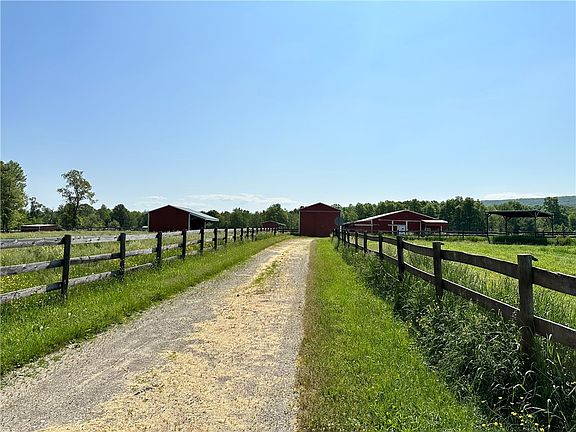 Almost 50 Acres! 2 Barns, 5 Run ins, 8 Stalls in main barn, tack room, pre-existing office with fullbath - wll require rehab. 11 acres hardwoods with trail access for hunting, 7 paddocks. *** HOUSE WILL require FULL internal rehab. ***