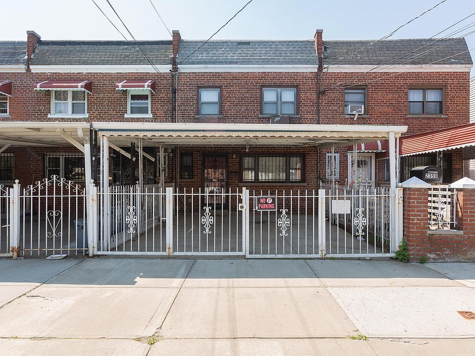 Brick Townhouse on 18x103 lot on beautiful block! Enter into the foyer leading into the large living room. The formal dining room faces the quiet back and flows into the windowed kitchen, which also has room for a little breakfast nook. For added convenience, there is a 1/2 bath on the first floor. The second floor has 3 bedrooms with closets, and a full bathroom with soaking tub. The basement is partially finished, with a very high ceiling, and an above ground window facing the large fenced backyard. You can access the garden through the basement door, or through the patio off the kitchen. Gas heat. The carport in the front of the house is large enough for 2 cars. Convenient to # 6 subway (express stop), as well as buses. Paddleball courts right around the corner, as well as the Castle Hill baseball field.