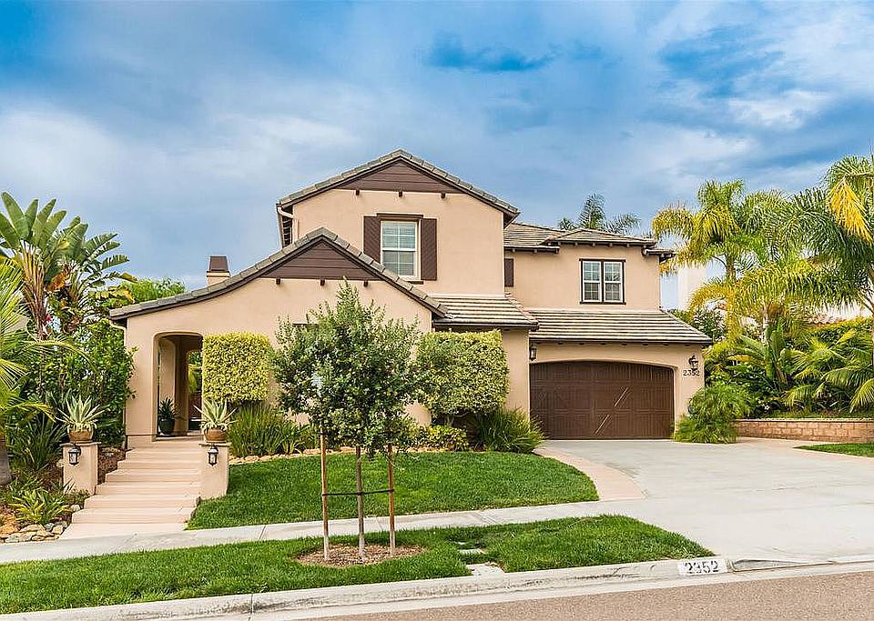 Seller entertaining offers between $1,050,000-$1,095,000. Fabulous tropical paradise in LaCosta Greens. Lushly landscaped private yard w/ canyon views & your own energy efficient salt water pool w/ Baja bench, & spa. Plenty of room in this 4 bedroom, 4 ½ bath & 3 car garage. The home features spacious gourmet kitchen, SS appliances, granite counters, tile flooring, fireplaces in living & family rooms, First level bedroom w/ full en suite bath. Master bedroom w/ balcony view, tiled bath, dual sinks, vanity, & much more. All bedrooms with own baths. See Supp. Enjoy the Presidio community amenities that are only a short walk away the includes a pool, tennis, gym, playground and clubhouse. Walk/hike around the beautiful grounds and alongside the waterfalls and duck lake. Close to Legoland and the Carlsbad outlet mall. Walking distance to Alga Norte Community park and water center. Contact 2nd agent Eileen LaRosa with questions and offers 760-580-7961