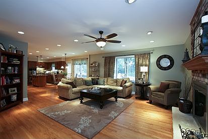 Wow! What a beautiful home! A fantastic floor plan for amazing parties. Hardwood floors throughout 1st floor. This home is very very roomy, take a look at the large Living Rm with Crown Molding, Dining Rm has crown molding & wainscoting, kitchen with granite counters, updated lighting, stainless steel appliances, large eating space for a family size table. Note Family Room Size, with floor to ceiling brick fireplace, triple windows for a beautiful yard and walking trail leading to fishing pond. Luxury Size Master Suite with updated bath & walk in closet. Guest Bath updated with double vanity. Finished basement with new carpeting & powder room. Sought after Naperville 203 schools. Close to train, 355 & I-88. You will love this one!!!
