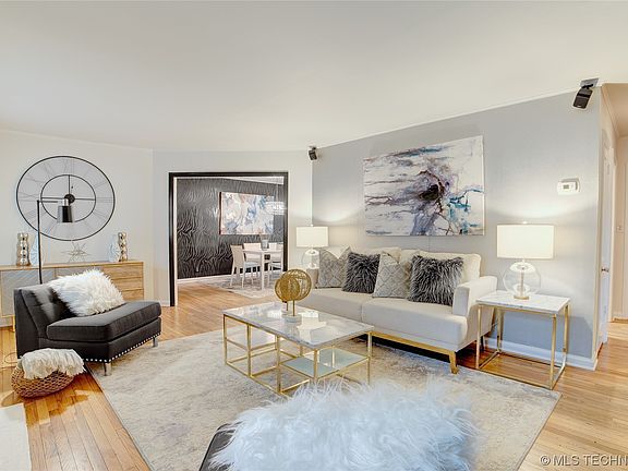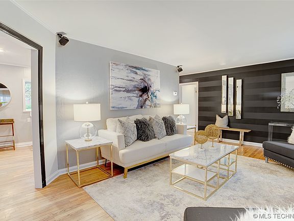 Classic mid-century, sandstone rock, 3 bedroom, 2-car garage home in highly sought after Midtown. This charming home has been remodeled, repainted and brought up to date while staying true to its mid-century design. Large corner lot professionally landscaped including a majestic shade tree in the front yard. Sprinkler system with Rain Sensor. Freshly painted privacy fence, partial guttering. The interior exudes the feel of the era; genuine wood floors throughout most, luxurious marble floors and shower/bath surround in main bathroom, ceramic tile flooring in 2nd bath/utility room with utility room designed for a stackable, full-size washer and dryer, beautiful light fixtures and can lights. Renovated kitchen includes classic quartz countertops, newer cabinetry and appliances with the refrigerator staying, microwave tucked away on a pullout drawer behind a cabinet door, hardwired under counter lighting, deep stainless steel sink below an oversized plate glass window. The master bedroom has His and Her closets, a large window seat/toy box for storage and a door to the back patio. The room shown as a bedroom behind the garage can be used as a very nice office with lots of storage.The garage has loads of cabinets and shelving. A full size refrigerator and wine refrigerator remains in the garage and a closet was built around the furnace for safety. The attic has a large floored area for storage. Fireplace is non functional and exempt from inspections. Agent related to seller.