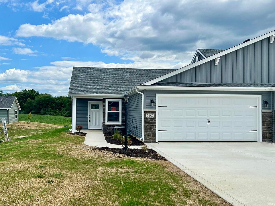 Brand new villa home under construction in wonderful Summerset Ridge. This Oakhurst II floorplan showcases 2 bedrooms, 2 full baths, and 1201 square feet of living space. Foyer entry with coat closet leads way to the great room with soaring chamfer ceiling, ceiling fan, triple window, and Andersen slider door that steps out onto the concrete patio. Kitchen features upgraded Hickory cabinets (finish color to be storm maple), angled upper corner cabinet, stainless steel microwave and dishwasher, extra deep kitchen sink, and spot resistant pull-down kitchen faucet. Laundry room located off of kitchen and has 36" matching hickory storage cabinet with hanging rod. Primary bedroom has ceiling fan and its own en-suite with 36"cultured marble vanity top with wave bowl, 5' walk-in shower with rain shower head, upgraded brushed nickel fixtures, and high-rise elongated toilet. Second full bath has tub/shower combination, cultured marble vanity top with wave bowl, upgraded brushed nickel fixtures, and high-rise elongated toilet. Bedroom 2 is also nice in size and has its own walk-in closet. Andersen windows throughout home as well as rounded drywall corners. Locking vinyl plank flooring as well as quarter round in all areas except bedrooms and bedroom closets. Upgraded interior and exterior lighting, trim, as well as architectural roof shingles. 2 car attached garage is finished and has 30"pull-down staircase to attic with 3 sheets OSB installed, wireless keypad, and dedicated freezer outlet. 95% efficient gas furnace and central air conditioning. Landscaping package included in sale and includes rough and final grading, 3 CY mulch beds, 15 shrubs (or hosta substitutes), and 2- 1 3/4" diameter trees. Lawn maintenance and snow removal is taken care of for you for $110.00 per month, leaving you with extra time to enjoy the finer things in life.