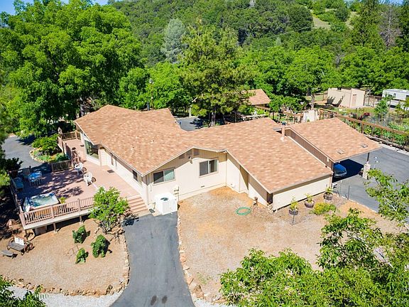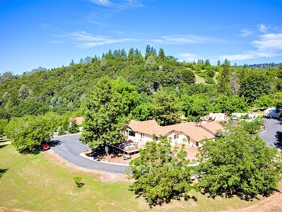 Incredible, endless, panoramic views and a one-in-a-million location. High speed internet so you can work from home. The privacy provides your very own sunrises, sunsets, and spectacular views of the Sierra Nevada mountains with star-filled nights. This gentleman's farm comes with over twenty-eight acres: filled with 4 varieties of English walnuts, 7 kinds of fruit trees, grapevines, a large shop, outbuildings, fenced-in garden area, potting shed, fenced livestock pasture & covered night pen. Plus, there is a dog run, attached carport & wood shed, 20'X21' metal building, and metal storage container. There is also a spectacular paved driveway leading up through the orchard to the home site. The beautiful home has an amazing Timber Tech deck, adorned with custom oak built-in storage, book, media and jewelry cabinets, Travertine tile, floor to ceiling stone hearth, 2 wood burning stoves, Tiffany stained glass ceiling lights, ceiling fans and Levolor vertical blinds. Rare picture perfect property.