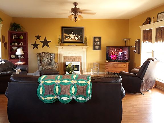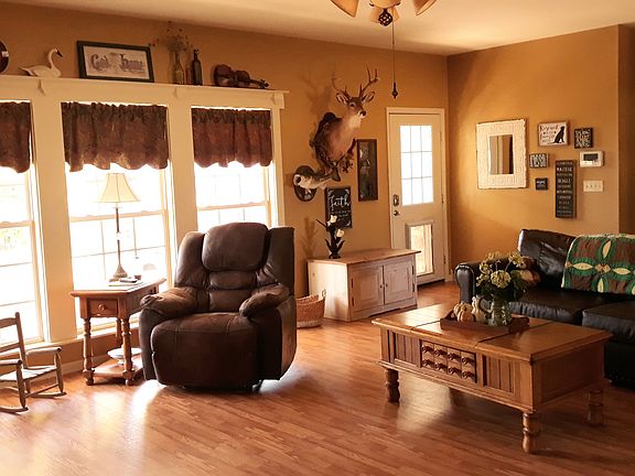 Sitting on over 2 acres this immaculate 2 bedroom and 2 bath home is picture perfect. The front porch greets you with rockers and ample space. When you open the door you will see beautiful hardwood floors, a separate dining room, a completely updated kitchen with a tile backsplash, soft close cabinets and beautiful appliances. The bedrooms have wood floors. There is a LARGE great room that has lots of windows, tall ceilings, big storage closet and laundry room. Outside is a must see, there is carport/patio area perfect for the Fall nights. A one car garage with a large workshop that is heated and cooled, sink and washer and dryer. The property is on a nice level 4 acres, some fenced areas and a playhouse with electricity is also on the property.
