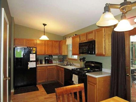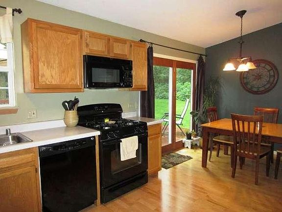 Open concept layout w/lots of living space, 3 bedrooms, 2 full baths, 2 living spaces offering maple hardwood floors, newer carpet in bedrooms & living area in addition to kitchen appliances. Wooded private back yard & sizable deck for entertaining. Private beach access with beach key is included in the annual fee which Also has a brand new neighborhood playground, volleyball and basketball court. Hooker Lake & park 2 blocks away!