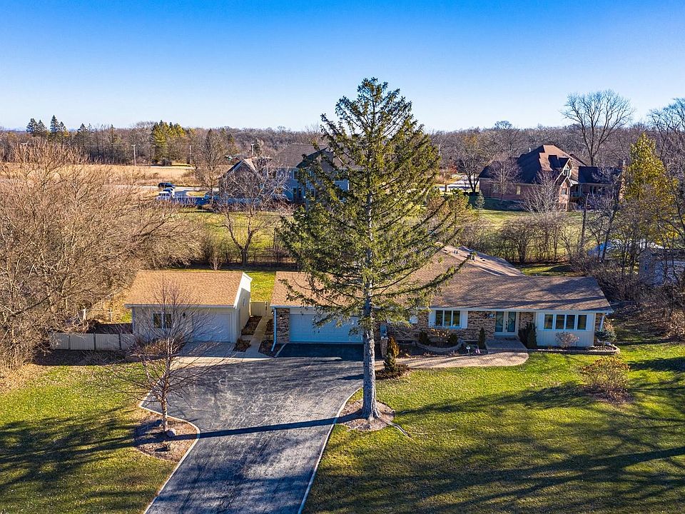 Don't miss the great I Guide tour of this fabulous ranch style home-floor plans and square footage included on the 3 D inside tour! Welcome to Shady Hill which is perfect for the Fox River boater. Private beach, boat slips and launch are all available for a minimum price. $500.00 for a personal slip..Launch your boat for free..No big hoa dues required.. Beautifully redone open concept ranch will check all your boxes. Your formal entry opens to spacious living room and formal separate dining room. Hardwood floors can be found throughout this home except in the kitchen which is marble flooring.. No carpets to vacuum here. The kitchen offers all stainless appliances, granite counters and glass tile backsplash plus custom cabinetry and breakfast bar. The open floor plan has the kitchen looking directly into the dramatic vaulted family room with radiant heat for the floors and the room's interior. One of 2 wood burning fireplaces can be enjoyed from both rooms and glass doors open to the 24x16 composite and wrought iron deck. The master suite is spacious with customized walk in closet plus 2 wall closets and a wall of windows. The master bath has double sink vanity, private water closet and luxurious walk in shower. Bedrooms 2 and 3 are roomy and share a full hall bath with Jacuzzi tub/shower and onyx countertops that have under mount lighting. Need a home office or a 4th bedroom? The lower level not only offers a 19x21 recreation room with 2nd wood burning fireplace but also a 21x19 game room which would make a perfect home office. The 53 x33 storage/utility area is plumbed for a 3rd bath. Water tank, softener, sump with backup, water heater and pressure tank all newer. There is a 2.5 attached garage and a separate, free standing 2 car garage with 1 front garage door and 1 rear garage door-perfect for the boat or water toy storage. Come see all this home has to offer. Welcome home.
