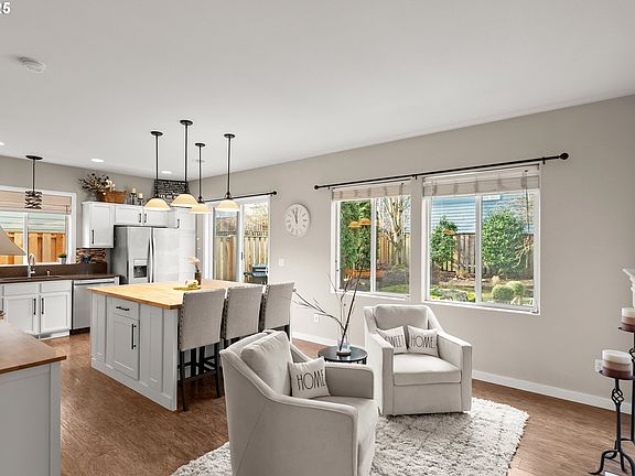 BOM no fault to home or seller. Charming traditional home on a corner lot in Sherwood. This residence offers exceptional updates and amenities, including a fully equipped kitchen with granite counters, a large butcher block island, an undermount sink, a full-height backsplash, stainless steel appliances, and ample cabinet and pantry space.The main floor features luxury vinyl plank flooring throughout, and the cozy family room boasts a gas fireplace and a slider to the backyard. The low-maintenance yard includes a large extended patio, perfect for outdoor entertaining. The property has several notable updates, including a brand-new roof installed in 2025, a newly added kitchen island, and a brand-new front door. The bathrooms have been tastefully updated, and the lighting has been upgraded throughout. Additionally, the furnace, water heater, and AC were all replaced in 2023. The location offers excellent walkability to downtown Sherwood, and the home itself enjoys abundant natural lighting and privacy from neighbors. The property also features fruit trees, including a pear tree, mint, and a blueberry bush. As an added bonus, Pinehurst Park is conveniently located kitty-corner to the home.