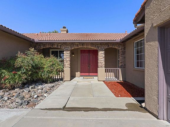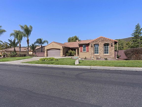 Welcome to your dream home nestled in the prestigious Rancho San Vicente Estates, a community that perfectly combines the tranquility of country living with the convenience of modern amenities.This beautiful one-story home offers two bedrooms, with option to easily reconvert into a three bedroom, features high ceilings and fresh paint, creating a sense of spaciousness and elegance as soon as you walk in. The primary bedroom is a luxurious retreat a double a double sink vanity, a separate shower, and a soaking tub for ultimate relaxation. With a three-car garage offering potential RV parking, this home is designed to accommodate all your vehicles and toys. The expansive yard is a true gardener's paradise, it is lavished with a variety of fruit trees including apple, orange, lemon, and fig. Roses and grape vines add a touch of beauty and fragrance, while the on-site water well ensures your garden stays lush and vibrant year-round. Imagine hosting lavish dinner parties in this idyllic setting, where you can enjoy the peacefulness of mountain views as your backdrop. Enjoy a serene lifestyle of the neighborhood with access to nearby hiking trails, golf courses, and all that the Ramona lifestyle has to offer, making it easy to stay active and enjoy the great outdoors. This property isn't just a home—it's a lifestyle. Whether you're entertaining guests or savoring quiet moments, this home offers everything you need to live comfortably and luxuriously. With its prime location, this is a rare opportunity to own a piece of paradise. Don't miss your chance!