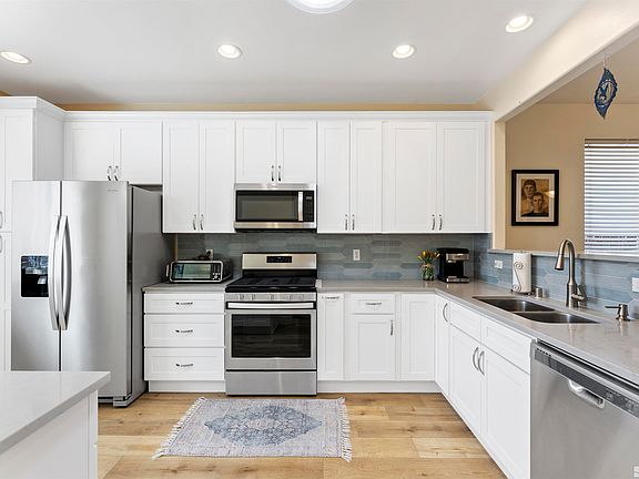 Located in Damonte Ranch in South Reno, this meticulously maintained single-level home offers a functional 1405 sq ft. 3-bedroom, 2-bath layout with thoughtful upgrades throughout. The professionally remodeled kitchen features Caesarstone quartz countertops, newer stainless steel appliances, a custom tile backsplash, and added cabinets for extra storage. The laminate flooring is professionally installed, seamless, and provides a smooth, high-end finish that enhances the overall feel of the space., A gas fireplace anchors the living area, while natural light flows in through a skylight and multiple sun tunnels. Each room is equipped with a ceiling fan for year-round comfort. Both bathrooms include newer vanities, sinks, and countertops. The front bathroom has a newer Panasonic WhisperQuiet fan, and the primary bath includes a Bluetooth-enabled fan. The primary bedroom offers direct backyard access through a sliding door, and the two additional bedrooms feature mirrored closet doors. The backyard is spacious and offers a sense of privacy, with a large cement patio, side walkway, fencing, and some mountaintop views. Additional features include a newer furnace (2018), tankless hot water heater (2021), and a whole-house humidifier (2018). Seller also proactively and professionally replaced all the Kitec plumbing in the home. OPEN HOUSE: SATURDAY, MARCH 29th 11:00 - 2:00