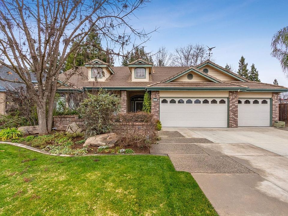 Beautifully upgraded home throughout at FANTASTIC PRICE! This 3BR/2BA is a great home close to shopping, hospital & access to 168 freeway. Open floor plan - great kitchen with walk-in pantry, granite counter tops, 5 burner Thermador gas stove, built in double convection oven, built in cabinets with pull out drawers; convenient storage of pots & pans, built in hutch, huge kitchen bar area open to family room. Family room with vaulted ceiling with gas fireplace adjoining dining room and family room, windows to view and enjoy back yard. Master bedroom has French doors accessing garden area in back, huge tub, shower with seat, double sinks & a beautifully placed glass door fireplace open to master bath and master bedroom. Hall bathroom has tub & shower. Oversized 3 car garage with extra area for workbench or hobbies. Garage floor has great finish applied. Backyard is professionally landscaped with patios - one with pass through from kitchen. Clovis Schools.