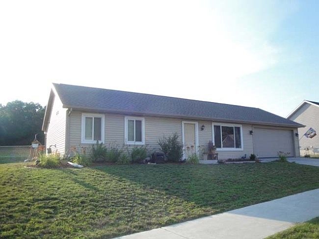 Nearly new, perfect starter or retirement home. Vaulted ceilings and open concept. 2 bedrooms with spacious walk in closets. Custom Amish cabinets, on demand water heater, above garage storage and garden shed. Fenced in yard, nicely landscaped.