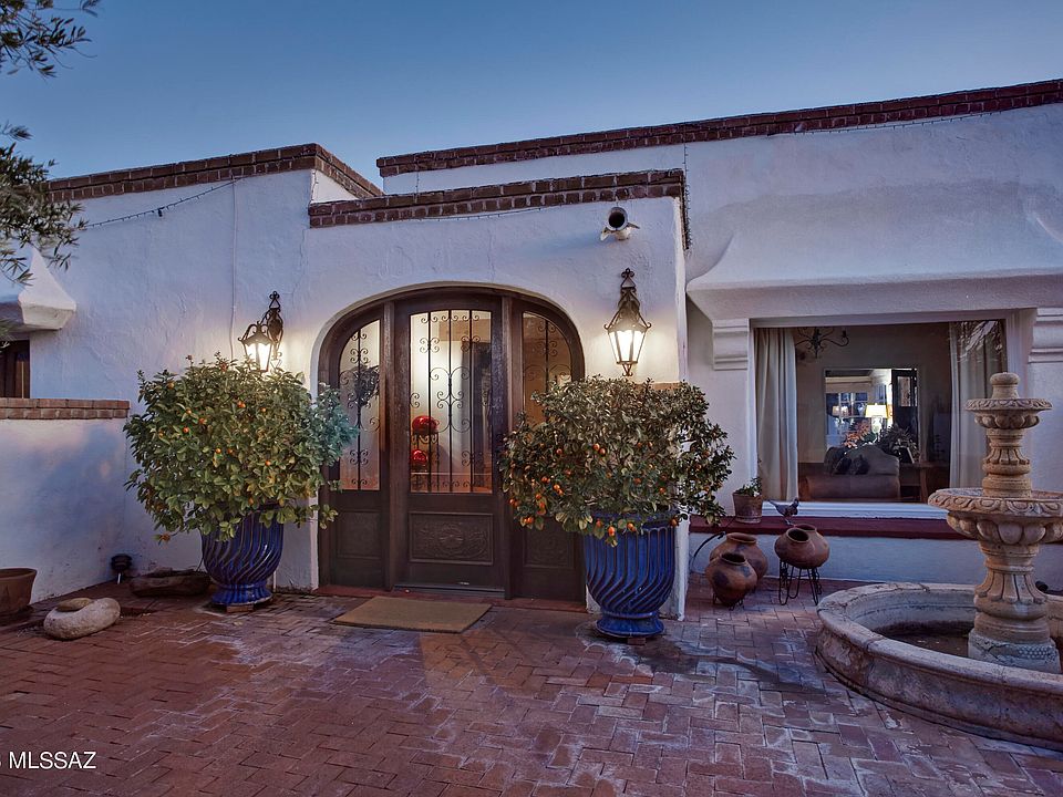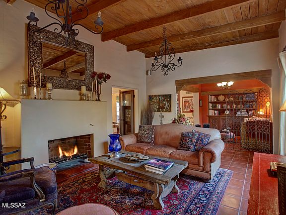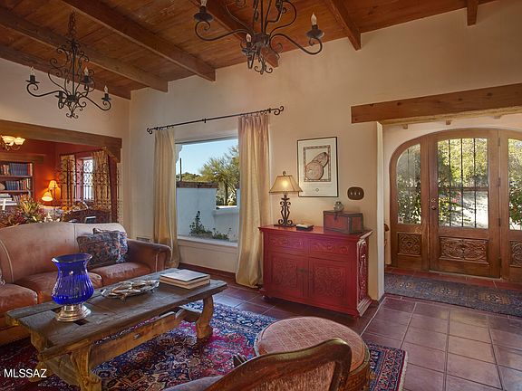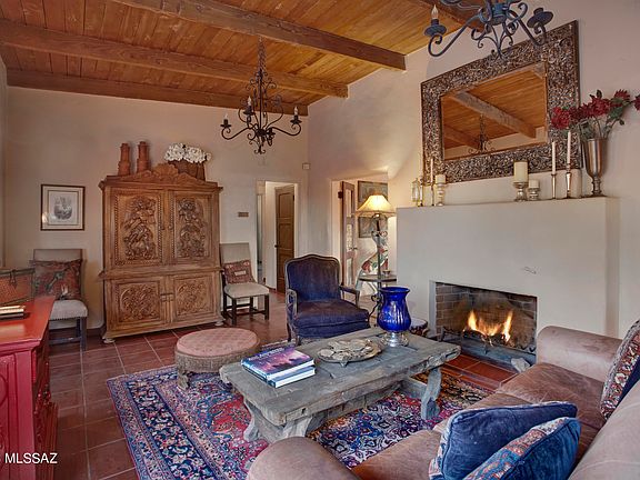 Charm and Character play the leading roles in this 1943 Joesler situated nicely on almost 4 acres in the ''old'' Catalina Foothills Estates. Known for his polished concrete floors, beamed ceilings, windows framing the desert /mountain views, multiple fireplaces and colorful Mexican tiles, this one will not disappoint! An intimate courtyard entrance leads into this old world classic. Delightful patio with pool and mature vegetation including orange ,lemon and grapefruit trees. Main house includes 3 bedrooms plus separate 2 bedroom guest house with kitchen , living room with fireplace bath. Guest hse has separate entrance but is attached to one of the two car garages.This property is horse property adjacent to a wash.