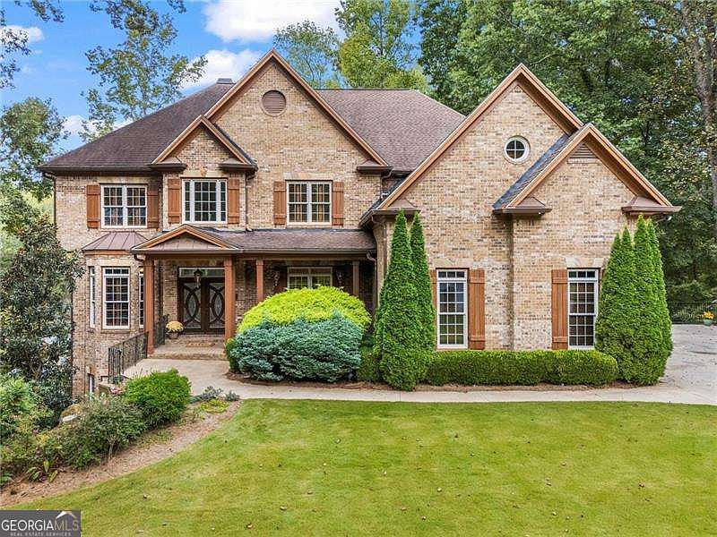 Freshly painted in a timeless neutral palette, this updated luxury residence in the coveted Hillgrove School District offers exceptional style and value. Nestled on a serene, wooded acre in prestigious McNeel Farms, the home features refined craftsmanship, designer finishes, and soaring 10-foot ceilings on the main and upper levels with 12-foot ceilings in the basement.The dramatic two-story foyer opens to an elegant study and banquet-sized dining room. A breathtaking Great Room with floor-to-ceiling windows, custom fireplace, built-ins, and 20-foot coffered ceiling anchors the home. The chef's kitchen boasts Viking appliances, Sub-Zero refrigerator, 6-burner range, custom cabinetry, brick flooring, and a walk-in pantry, flowing seamlessly into the fireside Keeping Room and cedar-paneled enclosed porch and open deck. A main-level ensuite doubles as a home office with peaceful backyard views. Upstairs, the Primary Suite offers a fireplace, spa-style bath with dual vanities, Jacuzzi tub, walk-in shower, and custom closet. Three additional bedrooms include one ensuite and a Jack-and-Jill, all with Jacuzzi soaking tubs and designer details. A spacious laundry with custom cabinetry and utility sink completes the level. Two daylight terrace levels-framed, plumbed, and with French door walkouts-offer endless possibilities. Recent upgrades include a Rinnai tankless water heater, 6 year old roof, and HVAC systems. Just minutes from Cheatham Hill Park and trails, this move-in-ready home combines timeless elegance with room to grow. Motivated seller, voluntary HOA, and no flood insurance required.
