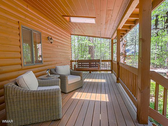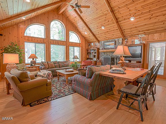 Luxury mountain living. This fabulous home features lrg soaring windows & vaulted ceiling. Gourmet kitchen w/ soap stone counters, gas range w/elec oven, eat in kitchen, + lrg dining area, beautiful wood finishes w/ accents from the Rodeo-Chediski Fire & Wood floors. Split bdrms , master bdrm suite features beautiful windows, shower & jacuzzi tub. Oversized inviting covered deck w/ fireplace. Furnished w/ high quality furnishings. Truly one of the finest homes in the mtns. Rarely do setting & architecture come together as perfectly as it does at 2353 Jackrabbit. The homes extraordinary allure is further enhanced w/ incredible interior design elements. Exquisite effects & an assemblage of furnishings that, in sum, create a majestic stateliness, impressive in quality, style & appearance.