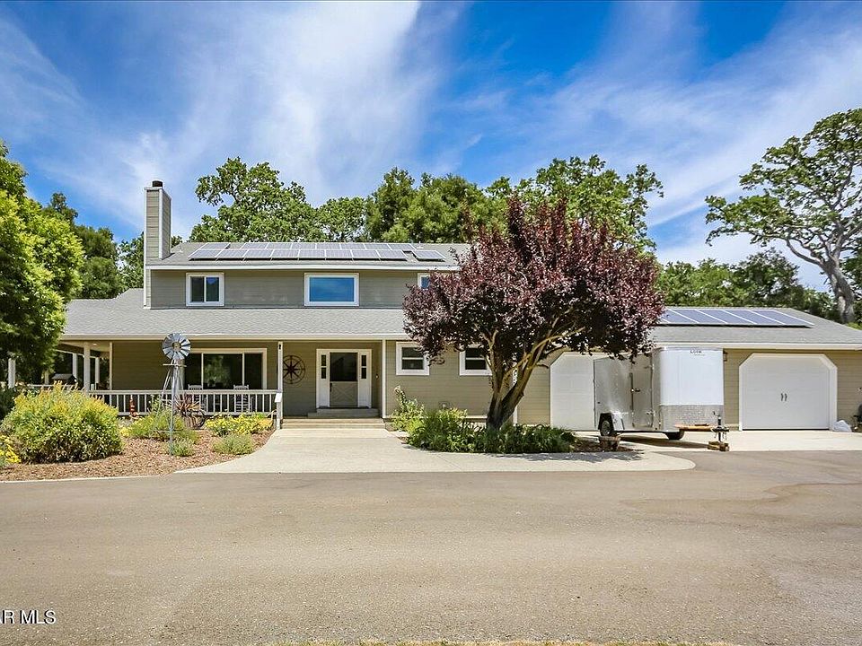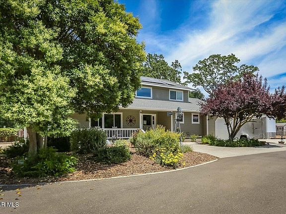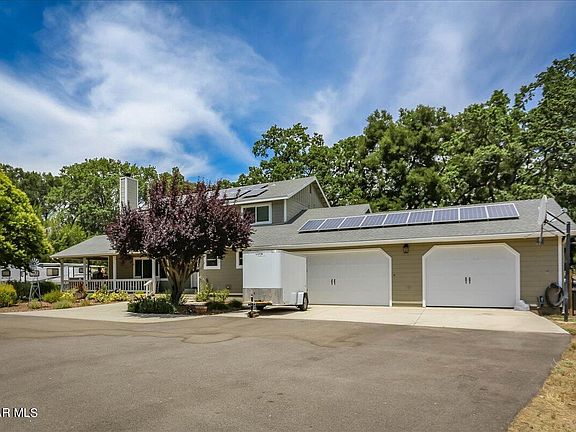 Set on approximately 2.5 flat acres and backing the shady creek out back this gorgeous 4 bed 3 bath home has been recently remodeled throughout. Step through the welcoming Dutch door entry & relax at the ranch, this turn-key home is in pristine condition inside & out. Updated eat-in kitchen boasts gleaming stainless-steel appliances, 6 burner cook top, a farm sink, lovely view from the bay window, walk -in pantry, quartz countertops, plenty of cabinet & drawer space and a cozy breakfast bar. Warm hickory flooring with weathered brick accents & coordinating solid interior doors really set off the large living and family rooms softly painted in a designer influenced color palette with complementing wood trim doors and base boards. There is also a separate laundry room & folding area and also a separate powder room. Upstairs you will find a stunning primary suite with a large walk-in closet & a remodeled bathroom finished with a large step-in shower, oversized sink, top quality cabinets and a quartz top. There are also 3 more good sized bedrooms upstairs sharing a recently remodeled full bath. All of the windows are upgraded with double pane Milgard windows making for improved energy efficiency whether it be the cool winter or warm summer. The roof was replaced in 2019 with a top-quality architectural series roof on top of which a owner owned series of solar panels have been placed for further energy efficiency. Behind the scenes is a new HVAC system installed in 2020. Outside it just keeps getting better. There are two full RV hook-ups for you and you traveling guests. A huge front porch and rear yard deck constructed with low maintenance Trex decking overlooking the large irrigated flat back yard and beyond to the creek. There is also plenty of room for storage or hobbies in the various out-buildings including a permitted 12x40 RV covered port, a workshop with full electric and a third car garage with air conditioning and heat currently used a gym. The property has several fruit trees including apricot, cherry and plum as well as lovely flowering gardens. This home has been completely remodeled over the past 3 years and will wow you in every way.