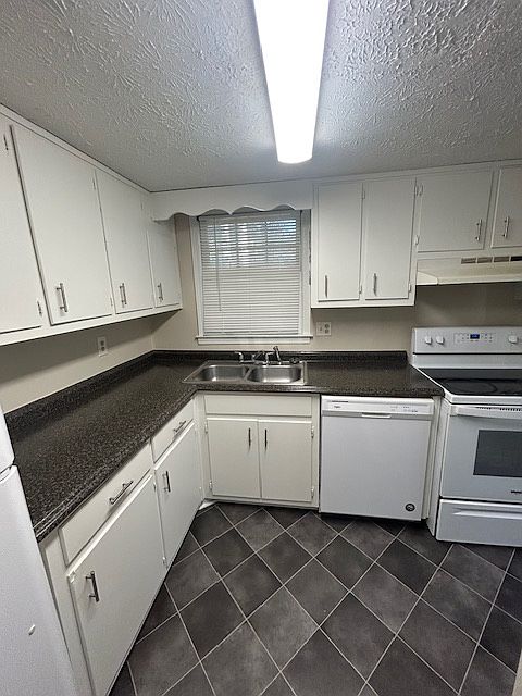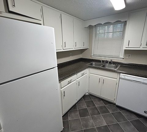 Bright kitchen with plenty of cabinets, plus stove, dishwasher, and refrigerator