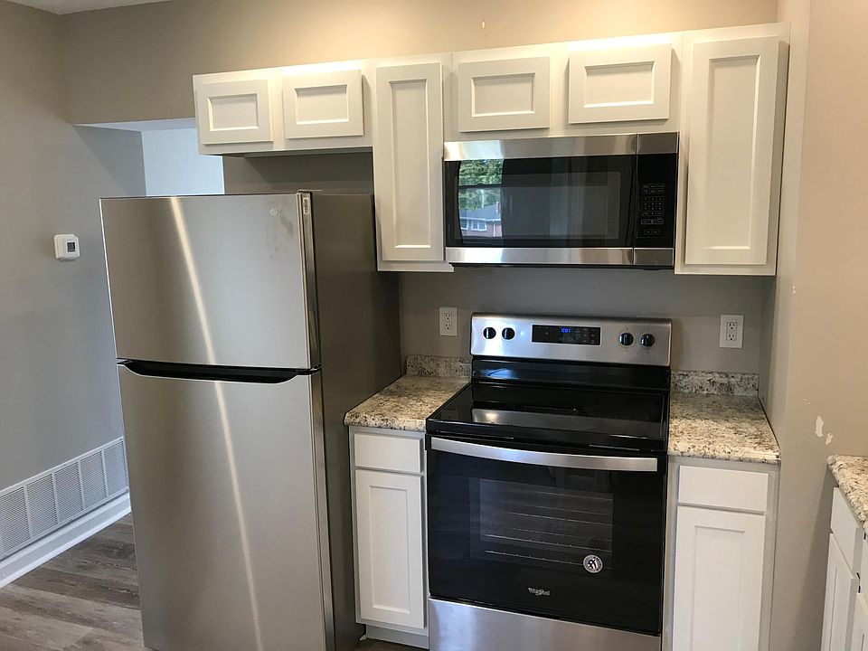 This is a second floor one bedroom unit with a large living room and has been freshly updated with new cabinets, Stainless steel appliances, plank vinyl flooring etc. Available immediately for well qualified applicants. Central AC and heat. Tenant pays all utilities. Coin laundry on site. No smoking. Pets considered with additional costs/ deposits.