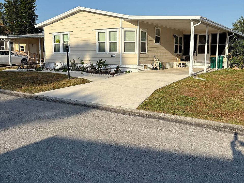WELCOME HOME to your lovely 2 bedroom 2 bath residence that has an open concept with a beautiful lanai that has plexiglass windows! NO NEIGHBORS OR HOMES BEHIND YOU, offering peace and tranquility!! Your new property embodies comfort and convenience, graced with a spacious eat-in kitchen, new appliances, plenty of cabinets, and lots of windows to look out while you are enjoying your morning coffee. The dining room contains a built-in China Cabinet perfect for storing and displaying your favorite pieces. The living room is capacious, ready to invite friends and family. The guest room is well appointed with a walk-in closet and guest bath right next door. The primary suite is classic and inviting, double closets and an en-suite with a walk-in shower, and a functional make-up vanity. The laundry room is INSIDE and the washer and dryer are STAYING. The shed is under air and the walk-way up to the front door is meticulously manicured. CALL NOW!! The Lakes of Melbourne has a prime location close to shopping, beaches, restaurants, a short drive to Kennedy Space Center, Cocoa Village and Beach, Viera, and an hour drive to Walt Disney World and all the attractions!! If you feel like staying in your community, there is plenty to do! Sparkling Resort-Style Pool, Pickle Ball, Tennis, Walking Trails, Clubhouse, Billiards, Cards, Fitness Center, Miniature Golf, Activities and More!!! CALL your agent for a showing at your convenience!! Start Living Your Florida Lifestyle NOW!!!